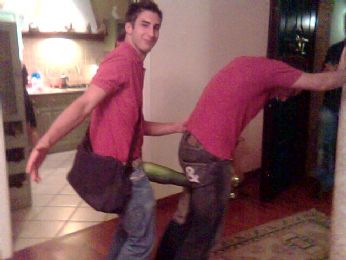Era da tanto che non passavo un week-end così splendido... venerdì sera tranquillo alla fiera a Villa del Conte, non c’era nessuno, ma ci siamo bevuti un pò di birra e ce la siamo passata ugualmente... Il sabato è stato il migliore..., tutti volevano andare in disko ma io e la mia Marty non eravamo stati avvisati e quindi non eravamo del giusto abbigliamento, è successo quindi che siamo andati a kasa dell’Annalisa e la Beatrice a Rubano e non so km ma m hanno dato le kiavi di kasa a me la Marty per rimanere lì.. ero contentissimo, mi avevano lasciato il via libera a tante kose (mangiare, bere dal frigo innovativo kon i ghiacci, la vasca idromassaggio e molto altro) (le ho provate tutte!!!!) Poi io la mia MARTY c siamo addormentati finkè non sn arrivati gli altri dalla disko ke hanno fatto un kasino terrifikante!!! Vi presento ora il reportage di sabato dove il personaggio principale e il PIVA con il suo SUCATO GIGANTE!!!!
