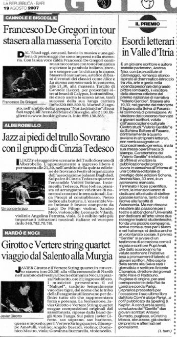 Se qualcuno è in vacanza non lontano dalla Puglia in quel periodo, lo aspetto alla serata di premiazione.