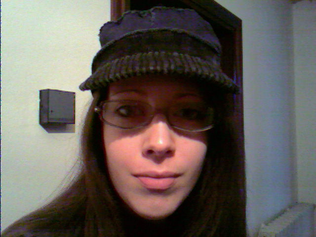 allora che ne dite del mio nuovo cappellino?come mi sta?lasciate stare la mia faccia da sonno...ieri sera cera una calca di gente in pizzeria...uffi...e la sera prima ho distribuito calze..quindi ho SONNO