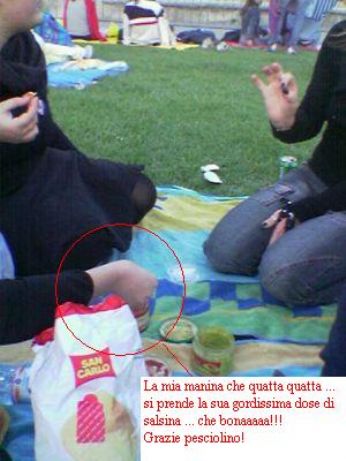 Preso posizione nel prato con tanto di asciugamani abbiamo dato fondo alle provviste (non contenta di quello che avevo già mangiato a pranzo!!!) ... abbiamo una foto ...