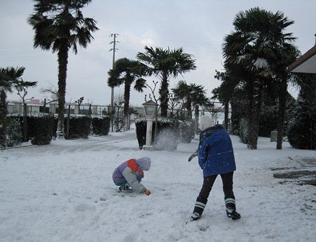 Bambini nella neve che giocano così nessuno è solo eppoi, non c’è mai tristezza qui e brilla ogni finestra, ma non so che cosa sia quel piccolo calore mai trovato in vita mia!