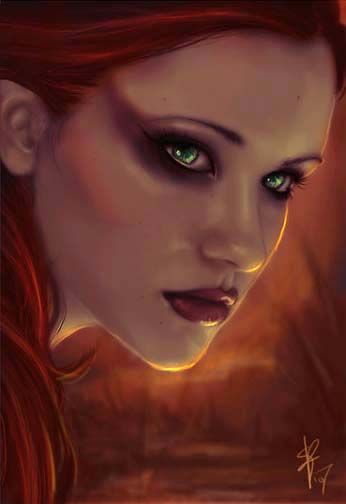 La sua corporatura era esile, la pelle chiara e delicata, i tratti del volto finemente delineati; solo il colore rosso acceso dei suoi capelli tradiva qualcosa di indomito, rivelando la sua più intima natura.