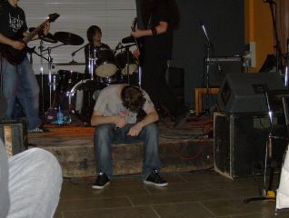 Allora..seratina Sottosopra(me so infumegà!)c’era sto contest..bisognava alzare le mani per votare il gruppo più gradito,il mio brother suonava per secondo..il primo gruppo faceva pietà ai sassi..ho minacciato un pò di gente..che non si azzardassero manco a respirare al momento della votazione..poi arrivano loro..e casino generale!!Sono stati bravissimi!!!!E il pubblico ha graditissimo!!Avevano già vinto senza neanche sentire l’altro gruppo..hihihi...fotine di repertorio...