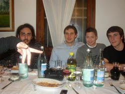 La serata come nella migliore delle tradizioni inizia allo Stella per gli N aperitivi di rito...alle 9 siamo al ristorante: bella mangiata e bevuta annessa...poi la mia vena cleptomane salta fuori e il Mastro ringrazia per la Bonollo...poi...tenderei a non entare nei particolari della serata...sono un cavaliere...lascio un piccolo estratto delle mie conversazioni: