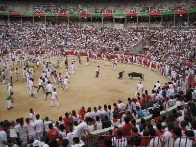 allora partenza da barcellona lunedì notte..direzione pamplona partenza alle 23.00 5-6 ore di viaggio arrivo a Pamplona alle 5.30 del mattino, nessuna pronotazione fatta in precednza, uno zainetto con effetti personali un asciugamano 0 ricambi e una tenda.....il tempo di capire dove siamo e ci rendiamo conto che la festa della sera precedente non era ancora finita....alle 5.30 i bar erano aperti i chioschi dei panini e stuzzichini vari tutti aperti c’era gente che vomitava e ballava, beveva e rideva musica alta e una città piena di giovani...noi storditi dal sonno faciamo un giro a vuoto per conoscere il territorio...alle 6,30 vediamo che alcune persone si accingevano a collocare le staccionate per la corsa e noi subito a pensare cazzo così presto lavorano, se la corsa è il pomeriggio ...ed è qua che sbagliavamo la corsa è alle 8.00 del mattino...quindi eravamo già in ritardo per trovare dei posti liberi in prima fila,,,ma alla fine alle 8.00 precisi la coesa è iniziata e il resto già lo sapete....entusiasmante!!