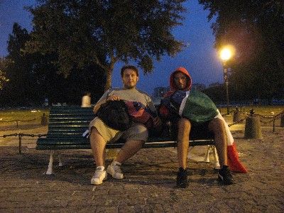 neanche a dirlo poche ore dopo due agenti della polizia ci svegliano facendoci capire che non si poteva mettere la tenda e che ci dava poco tempo per toglierla... ecco !!! e adesso dove si dorme? ormai nelle collaudate panchine!!!