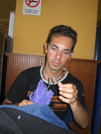 sicurezza a mille nell’areoporto di Girona La Branka aveva lasciato i picchetti della tenda nello zaino...tutto ok al controlllo vengono con noi in aereo pazzesco!!!!!
