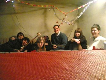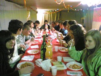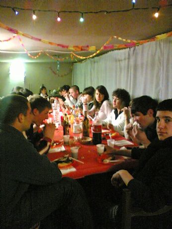 Fatto il desfo..eravami una 20 di persone a mangiare a casa mia..poi tutti ad una festa ad arsego, all’inizio un casino x entrare, ma poi finalmente siamo entrati..e li abbiamo fatto ancore di più il desfo..poi siamo tornati ancora a casa ma ci siamo stati poco, perchè alle 5, siamo andati a fare una specie di colazione, o meglio, solo x la Angela è statacolazione, visto che è stata l’unica che ha bevuto il caffè, mentre io e gli altri, non ancora scionfi, montenegro con ghiaccio.. siamo tornati da me, e finalmente alle8 siamo andati a fare colazione, ma quella vera, e in mezzo a noi ch’era un cadavere..dopo capirete il perchè...aq proposito!!!BICEGO...VA FARTE DEE LAMPADE, CHE SE MEIO VAEA’...finalmente,alle 9 dopo una notte insonne, siamo andate a letto, si, eravamo distrutte..ma contente x almeno un capodanno passato in tranquillità, e soprattutto passato insieme..