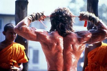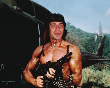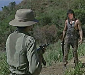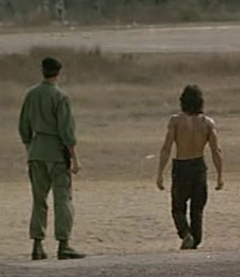Uscito dalla stanza delle torture, prende in mano qualsiasi tipo di arma e scarica milioni di proiettili contro i guerriglieri Teglong a guardia del campo di prigionia..