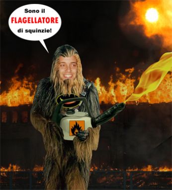 Monkey-Man ricorre a qualsiasi arma per assicurare alla giustizia ogni calpestatrice dei sentimenti altrui: nella foto, un modello di dildo lanciafiamme.. (L’arma utilizza il gel Napthal come base, ultra-denso e pressurizzato, che viene espulso dalla canna ed incendiato dalla fiamma che si trova davanti al foro di uscita) Che genio, Monkey-Man!! Con un dildo lanciafiamme, garantisce alle sue vittime una passione infuocata.. (Cliccare sull’immagine per ingrandire)