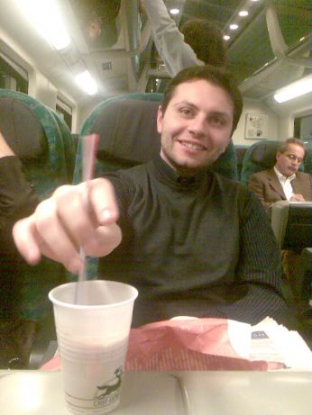 sabato. il sabato è sacrissimo...  sabato. sveglia alle 4.45. mi sono vestita al buio, battendo i denti dal freddo e dal sonno, autobus delle 5.34, arrivo in stazione con un’ora di anticipo rispetto al treno. la stazione alle 5 della mattina ha delle frequentazioni quanto meno interessanti. io mi siedo sul muretto e resto apatica, facendo spola tra il bar e l’edicola. il barista che al terzo caffè mi chiede quanto stanca sono e io che gli dicodi guardare che muso avevo  e che certe domande inutili non sono gradite prima del sorgere del sole. a padova recupero lui,splendidissimo, gli do il ciappucchino e la cannuccia per mescolarlo