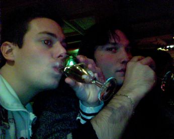 Eccoci a brindare con della sana acqua Tavina e a bere chupiti rigorosamente di thé alla pesca e pera...