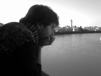 Mattia mentre riflette osservando il fiume che scorre (questa foto è emblematica del suo essere.....