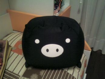 Il gigantesco pouf-pupazzo a forma di maiale che mi ha regalato Mattia......
