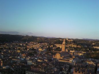 E Verona vista dalla suddetta torre, al tramonto