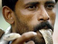 Un incantatore di serpenti indiano proverà a baciare 50 volte in bocca in un tempo massimo di dieci minuti un serpente velenoso.