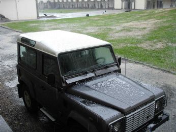 il defender sopporta anche la grandine!