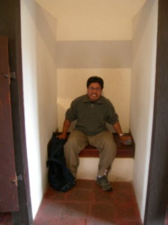 Jorge in un vecchio bagno del convento.