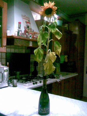 bhe intanto ecco Fabio che carino mi ha regalato un girasole...che io ho prontamente messo nel vaso adatto....