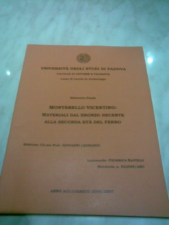 Scelta fantastica tesi con Leonardi...e sono contentissima di fare la Specialistica con lui perchè è veramente una persona valida e coinvolgente! oggi mentre mi metteva in ordine le tavole con i pezzi- che ormai conosco uno per uno alla perfezione- mi sono domandata cosa mi sia saltato in mente questa primavera di decidere di smettere di studiare...di andare a fare qualsiasi lavoro pur di lasciare lUni...