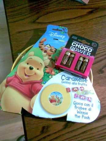 che vogliono che indossi il giorno della Laurea ( hanno scelto un "sotto" abbastanza coprente x fortuna!!!) veramente ci sono rimasta non me laspettavo! Poi si è presentata la Carlotta con un fantastico freesbee dpieno di caramelle di winnie pooh e dei cioccolatini-carica a forma di pile!!