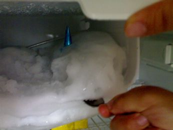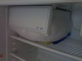 quello che si intravede tra il ghiaccio che chissà perchè non se ne vuole stare nel suo spazio sono...il mio spruzzino da spiaggia e una confezione da 1 litro di succo di frutta...dove non si vede nulla c’erano un altro succo di frutta e il burro...