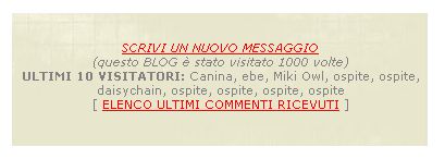 BLOG che SEGUO: grunge is not dead: carmille una frangia da colorare: Jackie innamorata come me di Ewan Mc Gregor: pennylane* senza dubbio il miglior gossip-blog in circolazione: daisychain perchè senza di lei non saprei chi prendere in giro: Canina un’intenditrice di musica: sharon** beato lui che sua madre è un writer: kina mi piace quel ragazzo. perchè? sto diventando forse ricchione?: Azzone meglio di Ace Ventura: ebe Non è la fame ma è l’ignoranza che uccide: Miki Owl "quella del concerto dei Lacuna Coil": peppermint a paris...: vanitysid basta non pagargli da bere: Dc67 dottoressa o spacciatrice?: 7misia tutte troie: LeGiOnArIo BOOKMARKS Nessun link inserito: Invita l'utente a segnalare i suoi siti preferiti! UTENTI ONLINE: |