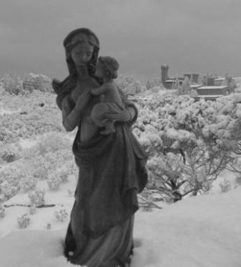 E il gelo della neve contrasta stupendamente con il calore di quellabbraccio dalle vesti di pietra. E tuttintorno gli alberi sembrano spettatori attenti di quellabbraccio.
