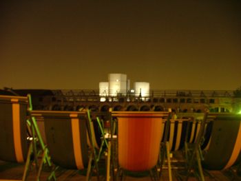 qui siamo alla Fabbrica del Vapore dove avevano organizzato unalba virtuale proiettata sul palazzo in fondo visibile da delle comode sedie a sdraio da spiaggia.