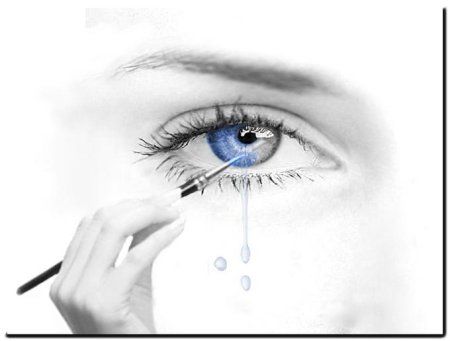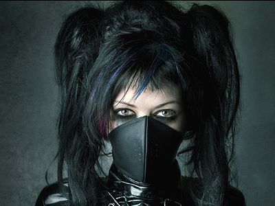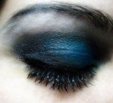 occhi bistrati di nero, blu o viola,