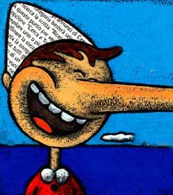 Chi della nostra generazione non ha letto Pinocchio? Quel burattino incline alla trasgressione ma dal cuore buono... io ci sono cresciuta immersa dentro come nella placenta materna... Proprio mia madre, appunto, me l’ha condito in tutte le salse fin quasi alla nausea... Quasi, perché in realtà Pinocchio non annoia mai. Anche voi avrete avuto una nonna che vi diceva: - Cos’hai detto? Stai attenta che ti vedo già il naso lungo come Pinocchio... - Sì perché io da piccola ero una terribile bugiarda. Inventavo storie mirabolanti e le dicevo con tale immedesimazione che a volte qualcuno ci credeva. Poi però qualcosa mi tradiva e allora nascevano prediche sull’importanza della sincerità alle quali forse ho prestato anche troppo ascolto...