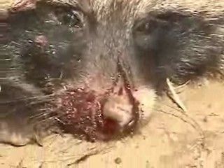 Qui si distingue chiaramente l’animale, agonizzante ma ancora vivo, a pancia in su, con quattro moncherini al posto delle zampe