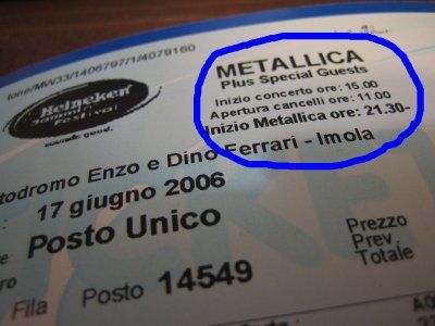 Non credo occorra aggiungere altro... se non che la scaletta è stata stupefacente, e i ’Tallica erano in gran forma, tutto master of puppets ragazzi, da lacrime!!!!