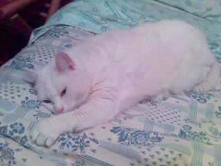 Sapete, a volte dicono che i gatti bianchi sono sordi... Ma se non vi cagano è perchè sono stronzi e se la tirano, non perchè non vi sentono!! La prova vivente della mia teoria è la mia gatta bianca che risponde (ma non spesso) al nome di Milù... Ecco alcuni scatti che ho fatto col cellulare... Voglio far sapere all’amico Salamandro che non solo ascoltiamo la stessa roba, ma abbiamo anche lo stesso gatto! Un saluto a te!