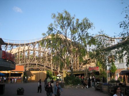 ...dei parchi divertimenti con enormi rollercoaster in legno...