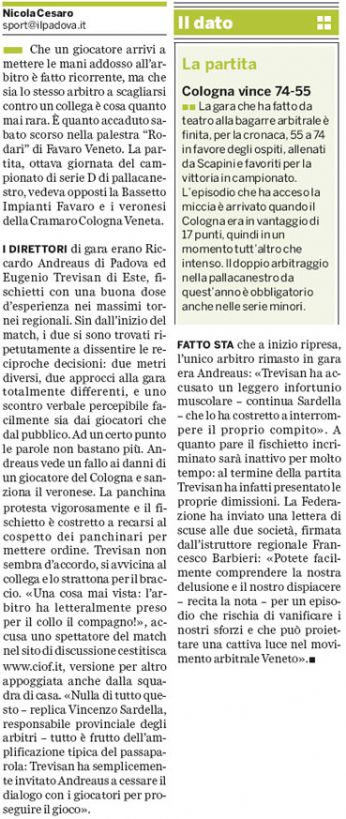 ...e che il fallo ero contro il Favaro, non contro il Cologna (ma su ilVerona è riportato correttamente, su ilVenezia e su ilPadova no...)...