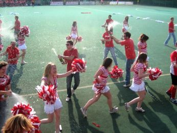 lunedì 2 giugno 2008 - ore 13:43 Festa di Medicina 2008 - i miei pensieri. Fine. Fine degli allenamenti, fine dellaspettativa, fine della sensazione di far parte di qualcosa di bello e speciale... Fine del "cus o garage della Vale?"... Fine del mac post allenamento... Fine del "prossima volta proviamo le posizioni" Fine delle risate e dei porchi per i passi impossibili... Con somma tristezza saluto forever i ponpon biancorossi due anni fa bene o male sapevo che avrei potuto rifarlo... inoltre le cose non erano andate proprio liscissime quindi cmq ero tornata a casa un po scornata.Questanno invece la preparazione dello show è stata già di per sè unemozione... grazie alla splendida Chiaretta che mi ha sopportata nei miei continui tentativi di collaborare... fin dalla scelta delle musiche a casa sua, continuando con le divise (che a quanto ho potuto intuire sono piaciute ) e infine i dettagli, tipo quei malefici tubetti dei coriandoli e ai teli (scritti dalla mia manina malferma alle 12.30 del giorno stesso della festa... )... insomma mi sono sentita parte attiva dellorganizzazione e quindi un po "mamma" apprensiva e orgogliosa Arrivando al succo della questione... sabato mattina comincia con una pessssima notizia: defezione di un ragazzo ponpon ma grazie alla geniale idea della Valentina e alla disponibilità del buon Pietrino riusciamo a salvare capra e cavoli. Prova generale sul campo grande... spugnoso e rimbalzino... sistemiamo la questione teli e organizziamo la mandria scatenata dei maschietti... poi dobbiamo lasciare il campo per larrivo delle ponpon B. A quel punto Irene ed io, accompagnate dal buon Federico, in una folle corsa torniamo a casa, ci docciamo e raggiungiamo la parrucchiera (credete forse che i miei capelli sarebbero stati a posto se mi fossi arrangiata? naaaa... ) dove ci concediamo un paio dore di relax e scongiuri; dopodichè a casa mia a prepararci: calze a rete effetto nudo, scarpa da ginnastica bianca rigorosamente col calzino, gonnellina bianca, maglia a righette biancorosse, pon pon, Cd con la musica... non manca nulla, possiamo andare!!Arriviamo al Cus e raggiungiamo il campo: problema, manca limpianto audio, sia qui che in fiera, visto che il service ha svampato signò lAlice donna dai mille poteri gira come una trottola impazzita per la città in cerca della soluzione, e la trova giusto in tempo per lintervallo: pari e dispari, si esibisce prima il B, del quale non abbiamo una diapositiva.Poi tocca a noi. Il campo sembra enorme, più di prima, più che mai. Per fortuna il tifo calorosissimo ci conforta e ci incoraggia ![]() Questo è il mio gruppetto alla partenza, cioè le condannate alla prima fila da sinistra, la bionda è lIlaria, poi io, la Chiara, laltra Chiara, lAngela e la Giorgia... notate la Chiara voltata a controllare con occhio attento il momento del via...Un momento dello show... io sarei la seconda formichina da sinistra... si notino anche gli uomini in rosso che nel frattempo, finito lo spogliarello chirurgico, si davano da fare a intrattenere e distrarre il pubblico ![]() ![]() Ecco il passo a due... gli ometti trascinati in campo fanno egregiamente il loro dovere! Ci sono anche io... la testa mora sotto la chiazza bianca (un camice) a sinistra... ![]() Ci avviamo alla conclusione... ![]() ...celebrata dai nostri uomini con una doccia di spumante!!! Io immediatamente dopo lesibizione, ancora sconvolta (notasi la scollatura da me definita "panoramica") E qui esulto in posa... senza accorgermi che le mie colleghe intanto correvano a festeggiare i giocatori dallaltra parte del campo, vabè ![]() Spezzone del balletto (gentilmente definita "scena lesbo" ) fornito dal buon Michael84...Io sono quella che per poco non sbaglia a prendere i ponpon altrui.. non si vede ma eravamo messe ad "A"...Il secondo tempo della partita ci regala emozioni contrastanti: due gol, il capitano che si infortuna , lespulsione del numero 19 e a seguire dellallenatore , due rigori dubbi, un gol contro... una sofferenza... fortunatamente la partita finisce sul 2 a 1 per noi, ma che fatica! festeggiamo i nostri uomini biancorossi, e poi pronti per le premiazioni: il Real Canale A si aggiudica la coppa per il quinto (mi pare?) anno di seguito, e come da tradizione le ponpon dei vincitori cedono la vittoria a quelle degli sconfitti. Non proprio volontariamente, ma cest la vie però posso dire? PON PON A VINCITRICI MORALI ![]() Un po festeggiando un po intristite ce ne andiamo. In sella al destriero del mio ometto approdo a casa, lavaggi e cena in velocità, e poi prendiamo il largo verso la seconda parte della festa, raccogliendo sul percorso la Giù (che sennò piange!) e lIrene (smemorina!). Parcheggiamo confortevole ed entriamo.. subito comincia la ridda dei saluti, millemilioni di volti noti, dal liceo, a spritz.it, ecc ecc.. andiamo a salutare gli amici, quasi tutti a fare servizio dietro il bancone, assaliti dalla folla urlante e gironzoliamo...incontri... ![]() ![]() e poi qualcuno chiama le pon pon A sul palco... io purtroppo lo sento in ritardo, ma alla fine giungo... ![]() ![]() ![]() ![]() ![]() ![]() ![]() E qui tentativo di radunare un po di noi giù dal palco.. ![]() ![]() ![]() che onore! io con Alice e Marco.. gli organizzatori (nonchè miei amici...cè il trucco.. )Lultima foto della serata mi ritrae nel casquè di fine balletto con il mio ragazzo ponpon nonchè socio e amico prezioso Tex ![]() ![]() E basta... stanca morta con i piedi a pezzi e le gambe pure torniamo a casa, il mio tato per farmi addormentare ha dovuto farmi i massaggini x quanto avevo male ![]() Che dire... io questa festa lho vissuta "da dentro" e quindi il mio parere è parzialissimo... ho detto mille cose e avrei voluto dirne altre mille, ma questo 31 maggio 2008 resterà a lungo nella mia memoria, insieme a tutte le persone che ne hanno fatto parte... in primis le cheer A, tutte dalla prima allultima, da quelle che già conoscevo alle nuove conoscenze, quelle con cui ho socializzat