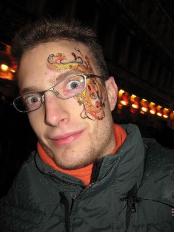 La voglia di esser comunque in tema con il Carnevale ci fa fermare dagli Artisti di Strada, per farci fare delle opere facciali, eccovi la fase di lavorazione e i risultati..: