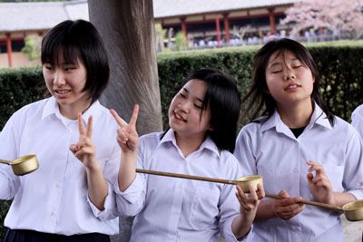Dunque, cari amici e amiche ![]() spritzini e spritzine, nonostante il santo Webbone mi abbia riammesso con il mio vecchio nickname, continuo qui a parlare del mio ultimo viaggio in Giaaa-ppooo-neeeee aprendo quello che non e’ stato, per nulla, il mio diario di viaggio! ![]() Quindi questo e’ un blog monotematico che pero’ non parla di effe.ai.gi.ei. ![]() ma dei seguenti argomenti... Contratto: 10 Feb. Clima: 12 Feb. Programma: 13,17 Feb. Costi: 19 Feb. Alloggio: 20,23 Feb. 2,6,9 Mar. Indirizzi: 12 Mar. Feste: 14,15 Mar. Denaro: 18 Mar. Fuso orario: 22 Mar. Salute: 28 Mar. 3 Apr. Trasporti: 5,6 Apr. Reportage: 17,19 Giu. 3 Lug. 7 Ago. 2009 30 Gen. 10,26 Feb. 2,7,9,22 Mar. 6,7,6,9,15,16 Apr. 2,3,4,6,12,15 Mag. 2010 PS. chi indovina il mio alter ego bannato, vince una cena jappo! ![]() PPS. nel caso fosse uno spritzino, il premio si riduce a birra/spritz ! (Isaac premiato)PPSS. nel caso fosse una spritzina morosata, il premio si riduce a un drink ! martedì 6 aprile 2010 - ore 11:34 JAPAN-32 Kyoto-5 Airport Shuttle per la seconda tappa del mio prossimo viaggio...PAGATO! Dopotutto arrivero in aeroporto a mezzanotte, quindi e la possibilita piueconomica per arrivare in hotel. Nel frattempo ricordiamo il precedente...Al centro della città sorge il Castello Nijo-jo, eretto a partire dal 1626 da Tokugawa Ieyasu. Le cinque costruzioni principali sono collegate da lunghi corridoi con pavimenti formati da tavole che emettono particolari cigolii quando sono calpestate (pavimento degli usignoli) al fine di impedire che si avvicinassero visitatori inaspettati. La villa di Katsura Rikyu è il più importante esempio di architettura residenziale giapponese della fine del Cinquecento. Sorge tra il fiume Katsura e le colline Nishiyama. La costruzione iniziò nel 1590 per volontà di Hideyoshi Toyotomi. Il giardino che la circonda è un capolavoro, opera dello stesso architetto che progettò la villa, Kobori Enshu, il quale per accettare lincarico pose tre condizioni: fondi illimitati, tempi di esecuzione a propria discrezione e divieto di qualsiasi visita o interferenza da parte del committente, durante i lavori. A spasso per Kyoto ![]() Dragone dacqua ![]() Incenso per purificare il cuore ![]() Kimono al tempio Kiyomizu ![]() Bere acque per avere fortuna, approvazione, amore ![]() Preghiera per lavoro e soldi a Kunimitsuinari, dio dell economia ![]() Cucu ![]() Otowa-no-taki: cascate dacqua pura da bere per avere salute,longevita e successo negli studi ![]() Otowa-no-taki: cascate dacqua pura da bere per avere salute,longevita e successo negli studi ![]() Spuntino del pomeriggio ![]() LEGGI I COMMENTI (3) - PERMALINK lunedì 22 marzo 2010 - ore 18:46 JAPAN-31 Kyoto-4 Automobile a noleggio per l’ultima tappa del mio prossimo viaggio...PAGATA! Nel frattempo ricordiamo il precedente...Altri giardini utilizzano sfondi di vegetazione che servono ad ampliare la profondità, dando l’illusione di una distanza che non c’è. Oppure utilizzano distese di muschio di vari tipi. Alcuni scorci sono di una perfezione assoluta che fa dimenticare l’estrema esiguità degli spazi. Anche la ricerca e la selezione delle rocce sono state compiute con grande pazienza e con grande cura. La tecnica per la creazione di questi giardini raggiunse il suo apice nel corso del XVI secolo, cioè nella stessa epoca in cui vennero codificate le regole della cerimonia del tè (cha no yu) e presero forma definitiva molte altre espressioni culinarie. Majinbu ![]() Photo game ![]() Bacaro giapponese ![]() Contemplazione dei ciliegi in fiore ![]() Mascherina ninja ![]() Dea Kannon (Tempio Sanjusangendo) ![]() Guardiano del Tempio Sanjusangendo ![]() I cattivi pensieri restano al tempio ![]() Cicciopanini giapponesi ![]() Tempio Kiyomizu-dera ![]() COMMENTA (0 commenti presenti) - PERMALINK martedì 9 marzo 2010 - ore 16:30 JAPAN-30 Kyoto-3 Bed & breakfast della prima tappa per il prossimo mio viaggio...PRENOTATO! Anche se non ho ricevuto mail di conferma la camera e diventata indisponibile... Nel frattempo ricordiamo il precedente...Il giardino più noto è quello del tempio Ryoan-ji, dove in uno spazio di soli trecento metri quadrati è racchiuso un paesaggio formato da ghiaia su cui sono posate quindici pietre di varia forma. Il giardino, detto kare sansui (giardino secco) rappresenta, secondo alcuni, la superficie del mare costellata di isole, oppure una distesa di nuvole o di nebbia dalla quale spuntano delle montagne. La superficie della ghiaia è periodicamente rastrellata e quindi percorsa da linee parallele dritte o curve che rendono l’insieme particolarmente equilibrato, oltre a dare il senso dell’impermanenza. Quindi non è un’opera d’arte fissa ma mutevole, così come è mutevole la realtà. Le quindici pietre sono posizionate in modo che da qualsiasi punto si guardi il giardino non si possano vedere tutte, cioè qualcuna resta celata, a simboleggiare il fatto che la realtà, per quanto la si scruti, rimane sempre in parte nascosta. Sfumature di colori ![]() Ingresso al tempio shintoista ![]() Al sole ![]() Indicazioni stradali... ![]() L’escluso ![]() Cimitero ![]() All’ombra dei ciliegi in fiore ![]() Gradazioni di colore ![]() Rosa ![]() Monaci ![]() COMMENTA (0 commenti presenti) - PERMALINK domenica 7 marzo 2010 - ore 15:18 JAPAN-29 Kyoto-2 Hotel della tappa di mezzo per il prossimo mio viaggio...PRENOTATO! Nel frattempo ricordiamo il precedente...La città non è stata bombardata nella seconda guerra mondiale e quindi il centro storico è rimasto pressoché intatto nella forma successiva alla ricostruzione. In un rapporto dell’esercito americano era stata indicata come obiettivo dell’attacco nucleare del 6 e 9 agosto 1945, su suggerimento del matematico John von Neumann; ma la scelta fu spostata dai generali su Nagasaki. La città è giustamente famosa per i Giardini zen. Sono annessi ai templi e costituiscono un raffinatissimo abbellimento estetico, ma anche uno stimolo per la meditazione. Sono