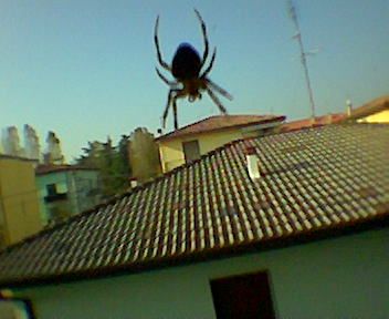 eheh, cosa si fa? ovvio, abbasso la tapparella e spappolo il simpatico animaletto...poi tiro su il tutto e lui è ancora bello appeso alla sua tela, uhm...pensavo fosse schiattato e invece dopo un paio dore non cera già più!
