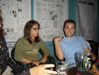 Ore 19.15: ritrovo al parcheggio solito...ma zero puntualità (anche se la ’super Zoppelli’ era convinta che lo fossimo) da parte di tutti. Abbiamo caricato il nuovo cd party/paranoia fatto da me per il tragitto e poi tutti lesti lesti siamo saliti in macchina e partiti per quel di Mezzavia dove ci siamo trovati col Ciak . Siccome però per la strada avevamo paura che Boppe ci mordesse (e ci trasmettese la ieia) l’abbiamo messo nel luogo più remoto della macchina, e da là i suoi atteggiamenti non ci spaventavano più. E neanche le sue minacce di Punch Buggy (se non sapete cos’è e volete leggere le regole ufficiali andate su questo sito: Beetlehaus Nonostante la fame cronica, arrivati a Padova siamo andati (giustamente prima di cena) agli spritz al Piovego...anche se qualcuno ha preferito la birrrrra: Si, sembra quasi serio il Ciak, ma possiamo assicurarvi che non lo è. Ed altre persone serie degustavano (seriamente) la loro birra: E per qualcuno era la prima vera birra da un mese... Fumo su obiettivo: La fame stava diventando letale...quindi abbiamo pensato bene di mangiarci un galletto Vallespluga (per relativo jingle ve lo canta Buba) al Funky Gallo. E si mangia con le mani! Stefy e Ciak post-banchetto: Dopo siamo tornati agli spritz al Piovego e ci ha raggiunti il mitico Blindzoom (Oh long Johnson...Oh don piano). E dopo? Alle 2 di notte passate abbiamo deciso di fermarci in pochi a casa della Zoppellina, che giusto giusto aveva un narghilè yemenita, visto che è tornata da poco dallo Yemen. E dopo qualche tentativo...l’abbiamo fatto funzionare...buonissimo il tabacco all’uva...sa di Big Babbol!!! La pratica del narghilè attuata dal mio amore Bini: E poi da Boppe: (una "cura" per i suoi polmoni, come ha affermato stamattina!) Devo tirare così?!?! La maestra: Boppe in trance: Che bel turbante! Per svegliarci dal sonno facciamo uso di Playstation2 (devo sottolineare che ho battuto mio moroso 2 volte al gioco "Dragonball qualcosa"..fortuna dei principianti lo so ) Ed ecco i ragassuoli all’opera (si, non è una figona quello di spalle coi capelli lunghi) Ciao, siamo belle figheire: Il sonno però alle 3.40 è troppo forteeeee, e qualcuno sta per cedere... E alle 3.40 tutti a casa!