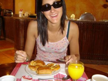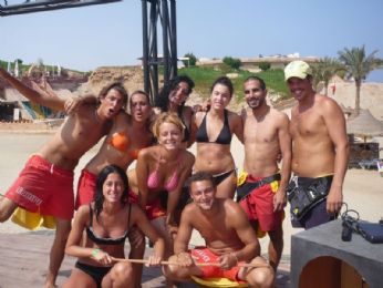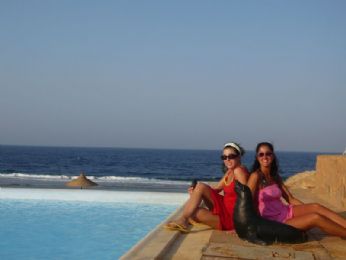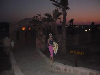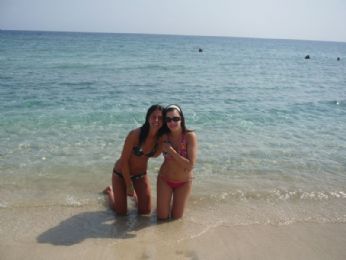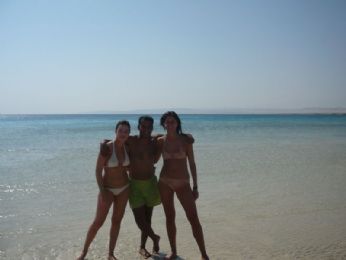7 ottobre 2007: partenza da Verona con aereo alle ore 6. E che si fa al sabato sera? Si va prima a Verona con Ele, Simo (ode all’autista, l’autista del pulmin) e Andrea, dove ci consentono di prendere solo birra perchè i bar erano in chiusura. ??? Non abbiamo ancora capito perchè viste le 20 bottiglie di Aperol senza tappo maestralmente appoggiate sul bancone. Alle ore 4.30/5 circa salutiamo gli uomini...siamo pronte per partire... ...4 ore d’aereo dove abbiamo dormito (testimonianza di ciò è il film in aereo che non ci ricordiamo)...però abbiamo potuto vedere dall’alto alcune isole greche e poi il deserto del Sahara...fantastico! Atterraggio un pò a scossoni per via del vento e poi...tutti in pullman verso l’Amaraya di Marsa Alam (l’accento và sulla prima A di Alam, ma non tutti lo sanno, o sapevano, come io e Ele). L’Amaraya è un complessino di 70 camere circa, con una piscina piccina picciò, un ristorante, un bar e un piccolo anfiteatro...una sorta di quartiere residenziale insomma...infatti le nostrea giornate le abbiamo passate nel resort più grande: il Kahramana, o Cara Mara, come diceva la Elena. Bu bu! Potevamo usufruire dei bar in spiaggia e piscina del Kahramana (Catamarano?!)e dell’animazione dello stesso, compreso l’anfiteatro con spettacoli serali. Nel nostro villaggio c’era solo un animatore, che però collaborava con quelli del Kahramana. Erano una decina di animatori, tutti simpaticissimi e bravissimi. Nonostante ciò io e Ele ci siamo dimostrate a-sportive e inanimabili (talvolta inanimate da fase R.E.M. sui ’morbidosi’, gli sdrai fatti solo da materassini mormidi ma spessi e piegabili)! Solo gli ultimi giorni ci siamo lanciate in qualche ballo di gruppo, in qualche gioco e nel karaoke. Miticoooo! Comunque, appena arrivati qualcuno già si lamentava che per andare in spiaggia si doveva camminare 5 minuti...che palle! Noi eravamo euforiche! C’erano due spiagge, quella dell’Amaraya, più piccina ma bella e tranquilla e quella del Kahramana, più grande, carina, con animazione, ma piena di mosche. E le mosche là sono un problema perchè ti si appiccicano addosso e non volano via se ti muovi di poco.