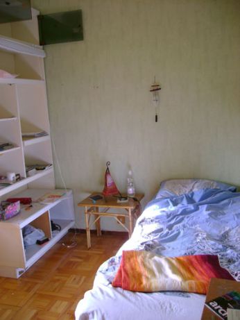 la mia parte di cameretta...è ancora un bel po’ vuota, ma presto troverò qualcosa da metterci. intanto c’è già la lampada e la copertina del marocco!!!