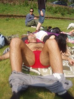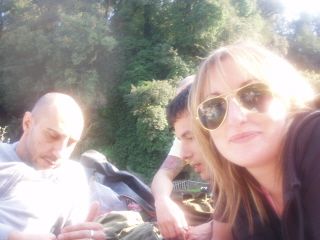 Finalmente stendiamo gli asciugamani, apriamo le cose da mangiare, togliamo il guinzaglio di Artù (il cane di Alessia)e magicamente il sole scompare. Non solo, cominciamo a sentire anche delle gocce di pioggia.
