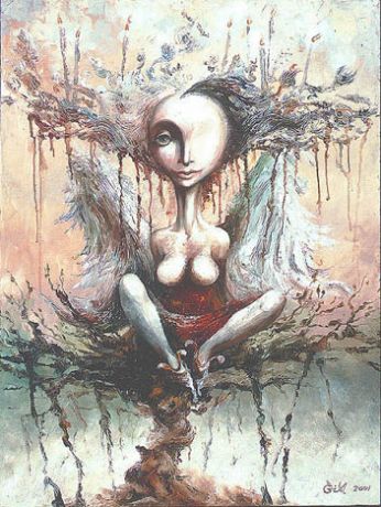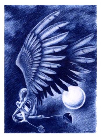 -Gocciola il tempo che passa incline... silenzioso e oltraggioso nelle mie informi forme... nn mi riconosco... perchè qui nn ho piu guardato... braccia corte.. mani lunghe... ali di grandezze differenti.. il volto è delineato a meta’.. il petto è quasi senza cassa toracica...