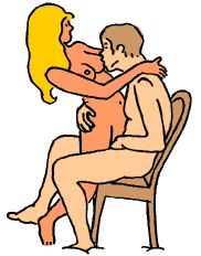 L’uomo é seduto comodamente su una sedia e la donna é appoggiata a lui. Mentre lei si muove, lui le mordicchia il seno. Questa, è una posizione originale e stimolante.