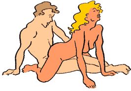 Appoggiandosi al braccio destro, l’uomo sta seduto con le gambe allungate mentre la donna, di schiena, si inginocchia su di lui a cavalcioni e si muove ritmicamente. Con la mano rimasta libera, il partner può accarezzarle i seni e la natiche.