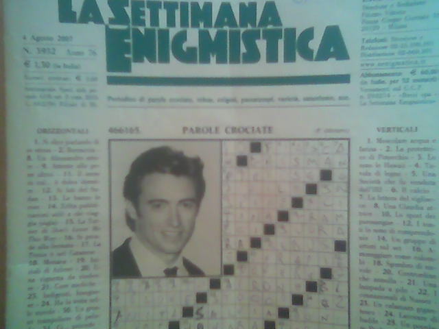 ![]() Caorle11.8.07 Amici!un elemento che caratterizza le ferie dellitaliano medio al mare è la mitica "Settimana Enigmistica".Io la compro spesso...3volte allanno pari ai sabato di ferie che sto qui al mare.Conosco qualcuno che alle 6 di mattina di tutti i sabato dellanno e già in edicola per prenderla.Io prediligo i giochi tipo"spigolature","forse tutti non sanno che...","strano ma vero","parole crociate crittografate",i rebus de"la pagina della sfinge"dei quali è tanto se riesco a risolverne uno...e le parole crociate?quelle con la foto del vip in copertina le fa pure il mio cane Pippo ma il"Malaguti"o il"Bartezzaghi"quelle con lo schema che prende mezza pagina ed hanno le definizioni impossibili,bisogna avere la"Treccani"al seguito.Sentite che roba:46verticale: LAbdallah re di Giordania,o 58verticale:fiume di Novosibirsk!notte fonda!e poi...69verticale...eh no ragazzi!questo è davvero troppo difficile per me...ci rinuncio!...maremmabuhaiola!... LEGGI I COMMENTI (1) - PERMALINK giovedì 9 agosto 2007 - ore 23:14