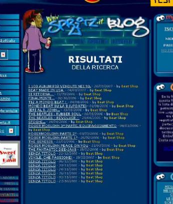 lunedì 23 aprile 2007 - ore 20:30 A tutti i chitarristi e... … appassionati!.. sabato comincia il SOAVE 2007 GUITAR FESTIVAL la 16° Rassegna Nazionale della Chitarra Elettrica ed Acustica da Collezione . Non mancate. LEGGI I COMMENTI (3) - PERMALINK domenica 15 aprile 2007 - ore 09:11 ...alla fine... …l’ho preso… non ho resistito al fascino della seduzione tecnologica. Incurante dello stato di salute del caricatore cd ancora sotto i ferri dell’elettrauto, ho acquistato questo gioiello “ipertecnologico” dotato di sinto-lettore cd/mp3 con entrata USB. È già tutto montato e perfettamente funzionante all’interno della mia PUNTO. Il modello è un SONY CDX-GT410U facilissimo da installare e da usare, per non parlare della comoda presa USB che consente di ascoltare la musica direttamente da una chiavetta hardware o da un lettore mp3 portatile. Esiste pure un’entrata AUX per un altro apparecchio esterno qualsiasi dotato di line-out o un’uscita cuffie. L’inserimento del cd sulla feritoia frontale mi ricorda gli auto-mangiadischi dei primi anni 70 e l’interfaccia del frontalino estraibile è sobria e semplice ed è dotata di comandi intuitivi tanto da non essere necessario il consulto del libretto delle istruzioni. Infatti, essendo stato per anni “utente” di autoradio “Kenwood” a frontalino mobile, non ho avuto nessuna difficoltà nell’imparare ad usare questo bellissimo apparecchio, anzi, direi che per me è stato un ritorno al passato e mi sono chiesto come mai questo tipo di meccanica antifurto sia ancora oggi in voga in contrasto alla tecnologia elettronica dei giorno nostri. Tuttavia, osservando questo autoradio ho pensato che non sarebbe stato male incorporare una memoria di almeno un paio di giga direttamente sul frontalino con la possibilità di poterlo collegare al computer per il caricamento delle tracce audio. Chissà se l’autoradio con hard disc (a meno che non ci siano già…) sarà la prossima mossa dei produttori piuttosto di quella grande cazzata, degli autoradio con il lettore DVD che hanno lo schermo grande come un francobollo… Potrei concepire meglio l’idea di un impianto DVD audio con il DTS 5.1 ma guardare un film per giunta in auto in un quadratino da 5 x 5 cm mi sembra semplicemente assurdo. LEGGI I COMMENTI (4) - PERMALINK venerdì 13 aprile 2007 - ore 07:50 Questo blog è stato visitato..... ULTIMI 10 VISITATORI: ospite, ospite, ospite, ospite, ospite, ospite, ospite, ospite, ospite, ospite Noto che le visite sono aumentate notevolmente da un po’ di tempo a questa parte. Questo fatto credo sia dovuto ai nuovi lettori esterni identificati come “ospite” senz’atro fan dei Beat Shop ma soprattutto amici ai quali proferisco un doveroso GRAZIE. Mi rivolgo ai “nuovi arrivati” che se vogliono leggere i post precedenti a quelli che sono visualizzati sulla pagina, esistono due modi: il primo è quello di usare il calendarietto in alto a dx ciccando sui giorni evidenziati in arancione scegliendo il mese con il link <- -Prec. In questo caso il calendario di questo blog torna indietro fino al settembre del 2005 e quindi ne avreste da leggere!… Il secondo modo invece forse più veloce è quello di scrivere la parola chiave sullo spazio sotto il calendario ciccando sul pulsante ”CERCA” “solo in questo BLOG”, sarete trasportati in una pagina dove ci saranno tutti i link degli argomenti da me trattati che potrebbero essere di vostro interesse. Ad esempio: se scrivete la parola “BYRDS” sarete catapultati direttamente a questa pagina dove potete trovare tutti i link dei post dove in qualche modo io ho trattato l’argomento o una recensione del disco etc.. che riguarda i Byrds. Inutile dire che l’argomento più trattato in questo blog è…??? Mah!… COMMENTA (0 commenti presenti) - PERMALINK martedì 10 aprile 2007 - ore 20:42 e...venerdì 13... ![]() …ritorniamo allo “Stray Cats”. Per questa nostra ultima esibizione al locale per questa stagione, ci è stato chiesto espressamente di volgere la serata totalmente verso il repertorio di beat italiano anni 60, pertanto, niente cover Beatles questa volta bensì successi nostrani di complessi e cantanti del passato che hanno caratterizzato il genere dei “capelloni”, in antitesi alle nostre “folte” capigliature… La serata sarà tutta svolta in elettrico con la formazione classica a due chitarre, basso e batteria. Sarà un’ottima occasione per sfoderare la mia Rickenbacker 12 corde che riporta sul battipenna l’autografo di Shel Shapiro dei Rokes . Del mitico gruppo inglese che ebbe clamoroso successo in Italia, eseguiremo uno “special” di canzoni con gli arrangiamenti strumentali e vocali il più possibile vicino agli originali. Venerdì con inizio alle ore 22:30 Beat Shop in concerto allo Stray Cats, via Della Croce Rossa. Sembrerà di essere al “Piper”!… LEGGI I COMMENTI (2) - PERMALINK domenica 8 aprile 2007 - ore 11:10 Auguri di... ..a tutti! LEGGI I COMMENTI (2) - PERMALINK venerdì 6 aprile 2007 - ore 06:33 ...no ghe credo...! A proposito di musicassette visto che il lettore CD della mia auto è ancora in coma profondo… stamattina mentre ascoltavo una cassetta, è successa una cosa che ha dell’incredibile. Stavo armeggiando con il tasto “rewind” perché volevo riascoltare nuovamente la stessa canzone, dopodiché, ri-premo “rewind” per far partire la cassetta questa volta dall’inizio e comincio a sentire dei rumori stranissimi provenienti dall’interno dell’autoradio che mi fanno pensare al peggio, ovvero, …ecco la testina che banchetta con il nastro magnetico come succede per la maggior parte dei casi. Non ho nemmeno fatto in tempo ad espellere la cassetta rassegnandomi al chilometro di nastro inevitabilmente incastrato all’interno, che l’autoradio preso da un raptus simile a quello dei lama o…dei rospi, sputacchia letteralmente al di fuori la cassetta lanciandola incredibilmente sopra il pannello posteriore dove d