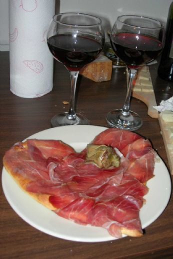 Una focaccina crudo e mozzarella
